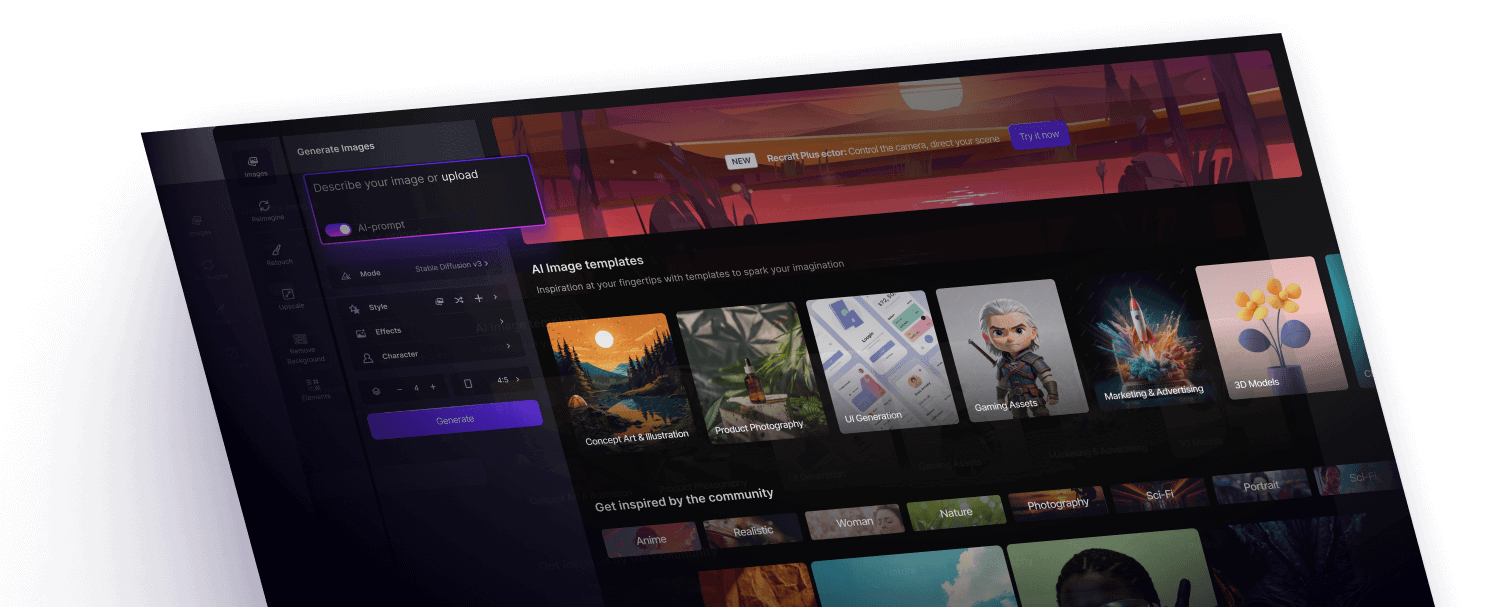 Tech professionals and software companies can generate UI concepts, promotional graphics and website assets in seconds.